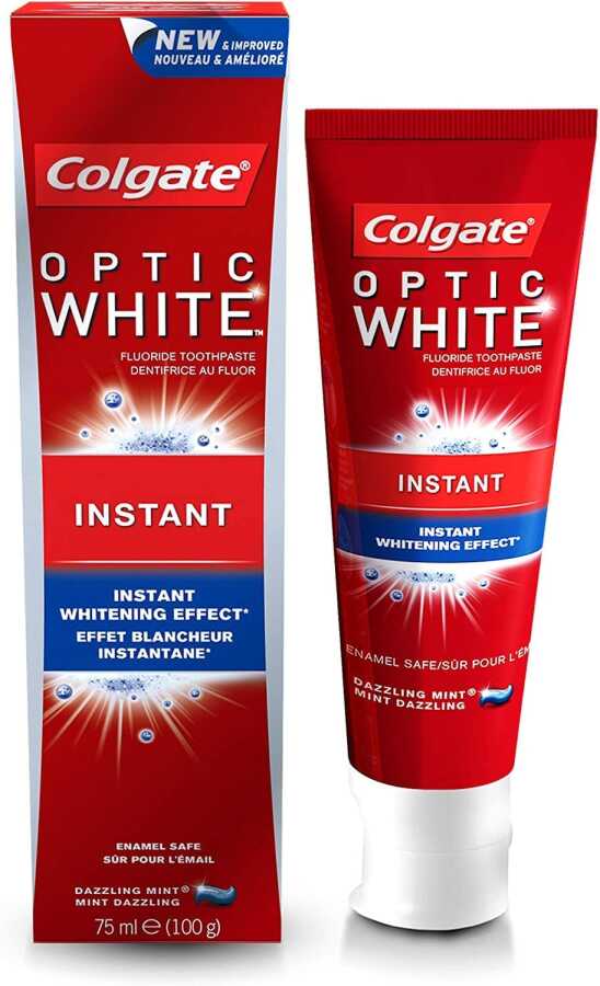 Colgate Optic White Instant Diş Macunu, optik beyazlatıcı teknolojisiyle dişlerde anında beyazlık etkisi sağlar. Yüzey lekelerini %100’e kadar giderdiği klinik olarak kanıtlanmıştır. Diş minesi için güvenli olan formülüyle düzenli kullanımda daha parlak ve sağlıklı bir gülümseme sunar. Ferahlatıcı aromasıyla ağızda temizlik hissi bırakır.