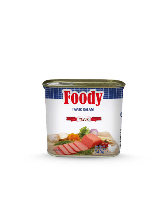 Foody Tavuk Salam Konserve, 340 gramlık teneke ambalajında sunulan, pratik ve lezzetli bir tavuk etli şarküteri ürünüdür. Lübnan menşeli bu ürün, özellikle kahvaltılarda, sandviçlerde ve ara öğünlerde tüketim için uygundur. Yumuşak dokusu sayesinde kolay dilimlenebilir ve hem soğuk hem sıcak olarak servis edilebilir. Hazır tüketim için ideal olup, Helal sertifikalıdır.