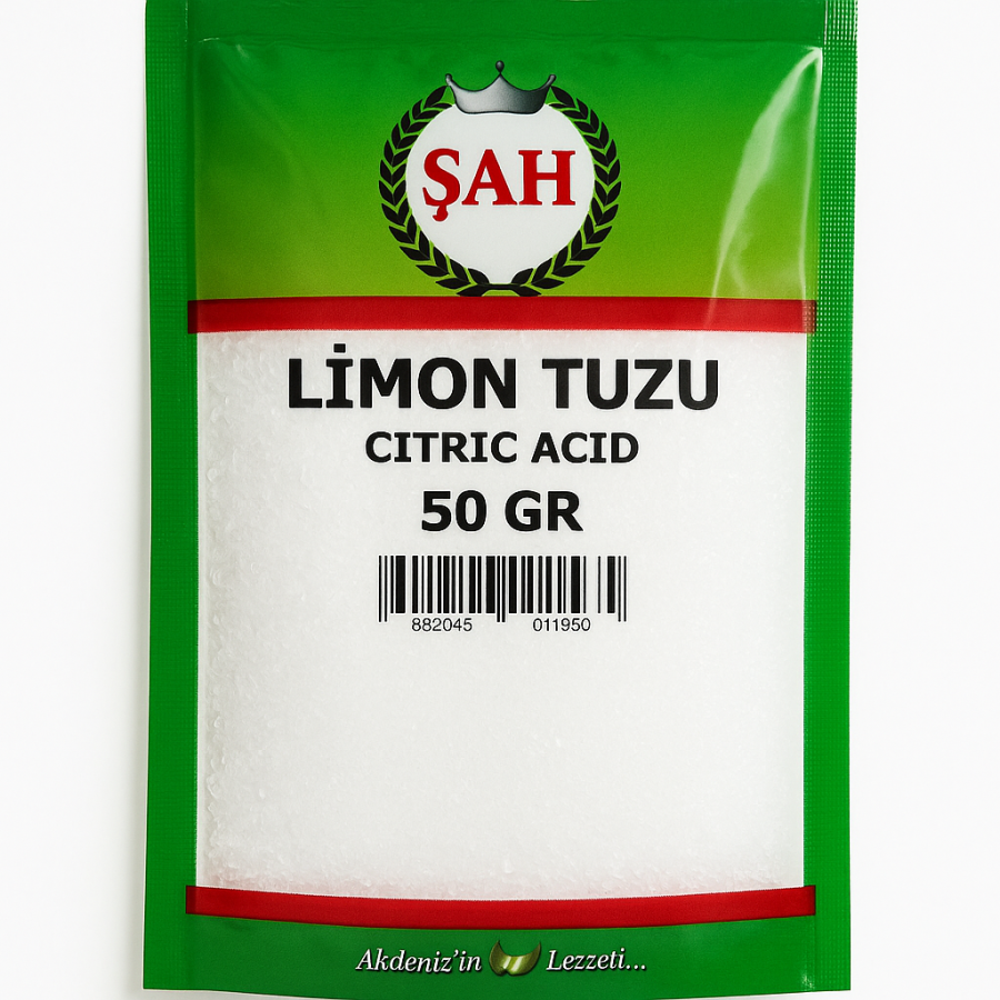 Ürün Açıklaması Şah Limon Tuzu 50 gr, limonun doğal asidik yapısını taklit eden kristal formda bir gıda katkısıdır. Özellikle turşu, reçel, komposto ve bazı hamur işlerinde koruyucu ve lezzet artırıcı olarak kullanılır. Ekşi tadı sayesinde limon yerine tercih edilebilir.