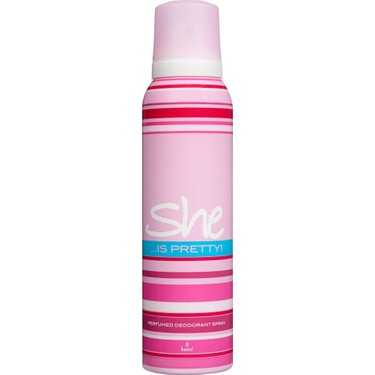 Ürün Açıklaması: She markasının “Pretty” serisine ait bu kadın deodorantı; gün boyu ferahlık ve hoş koku sunmak için özel olarak formüle edilmiştir. Hafif çiçeksi ve meyvemsi notalarıyla zarif bir etki bırakır. Ter kokusunu önlemeye yardımcı olurken ciltte tazelik hissi sağlar. 150 ml’lik sprey formuyla pratik ve dengeli uygulama sunar.